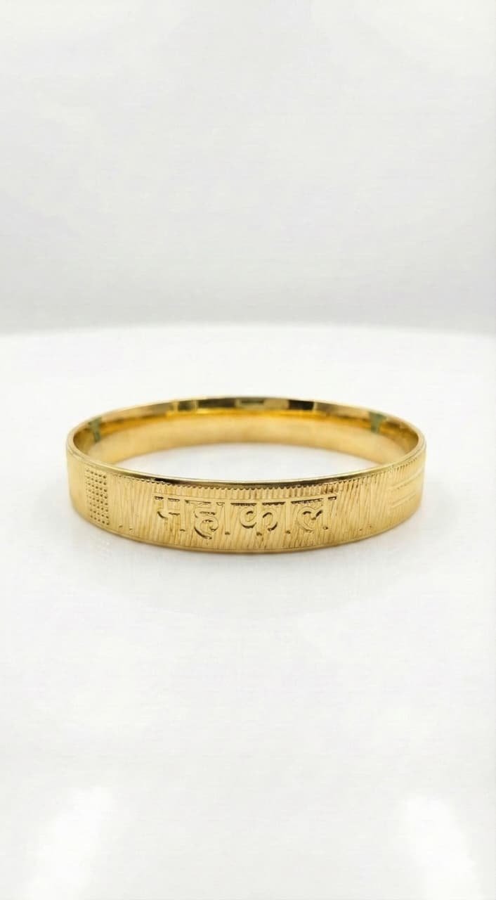 Made from high-quality, durable metal, this Mahakal kangan is finished with an elegant gold polish that offers a premium look while being suitable for daily wear. Its smooth edges and comfortable fit ensure ease of wear throughout the day, whether at work, during worship, or on special occasions.