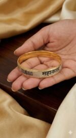 Embrace the divine power of Lord Mahakal with this premium Gold-Silver Mahakal Kada Bracelet, designed for both men and women. Crafted with a strong and durable metal body, this religious wrist kada features the sacred “महाकाल” engraving along with a powerful Trishul symbol, representing protection, strength, and spiritual energy.