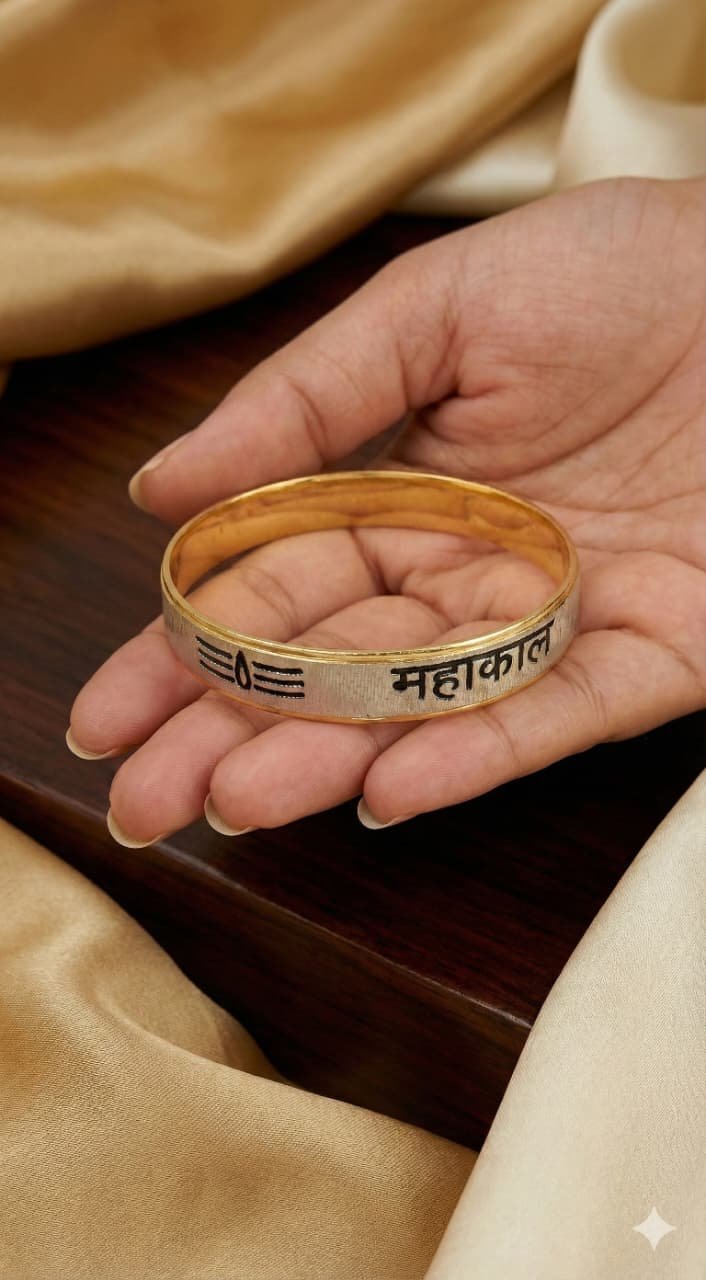 Mahakal Kada Bracelet for Men & Women | Gold-Silver Mahakal Kada | Hindu Religious Wrist Kada
